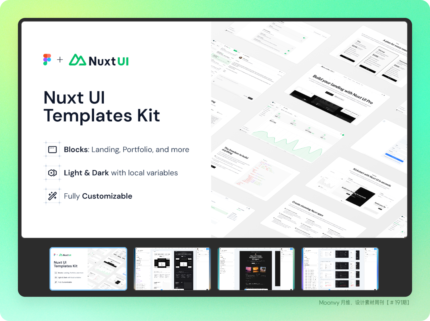 这是一套官方免费推出的 Nuxt UI v4 生产级模板合集,包含落地页、文档站、作品集和仪表盘四种核心布局;这些此前属于 Pro 付费版的设计现已全面开放,完美适配 Nuxt UI v4 组件库与 Tailwind CSS v4 架构,支持全端响应、亮暗模式切换及 Figma 自动布局