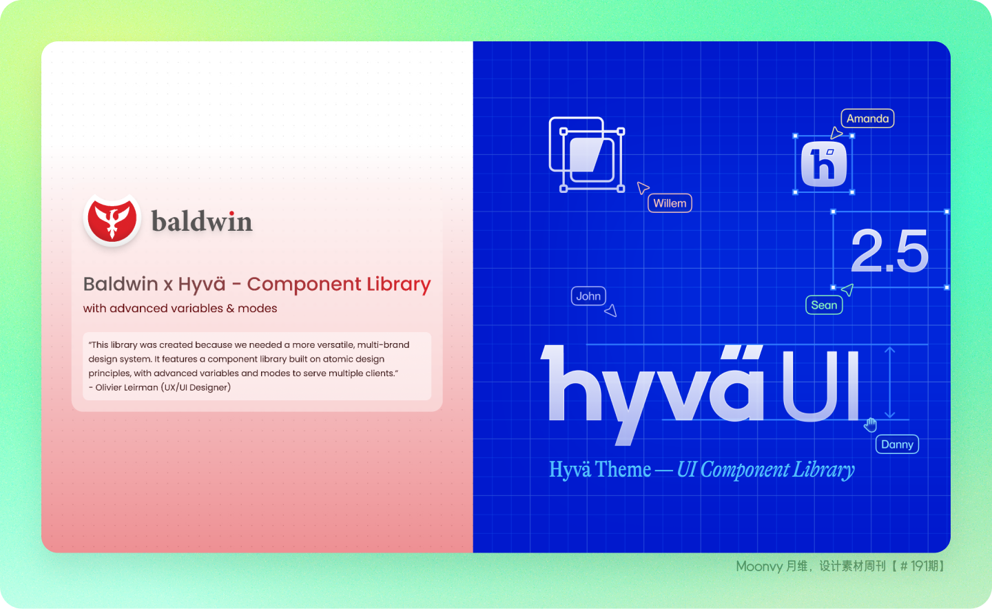 为了解决原有 Hyvä UI 库在复杂项目中的局限性,Baldwin 团队开发并免费开源了 The Baldwin x Hyvä 组件库;这是一套专为多品牌电商项目打造的生产级设计系统,采用原子设计结构以确保扩展性,并支持高级变量与模式以实现轻松的主题定制,完美弥补了原版在灵活性和功能深度上的不足。
