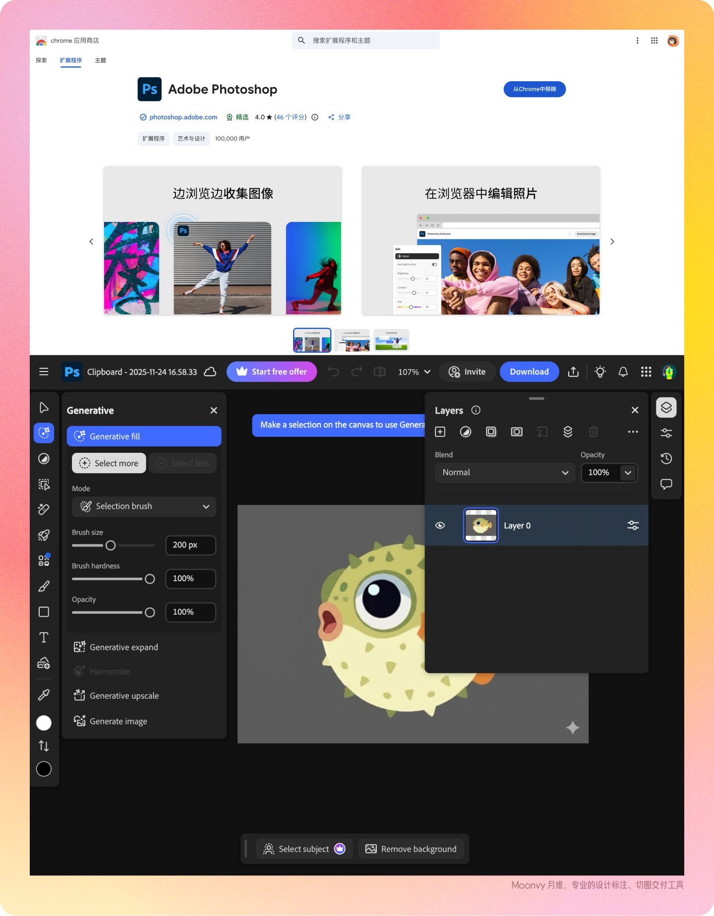 谷歌 Chrome 官方同步表示,安装 Adobe Photoshop Chrome 扩展即可使用该服务,强调其在浏览器中的精简体验。