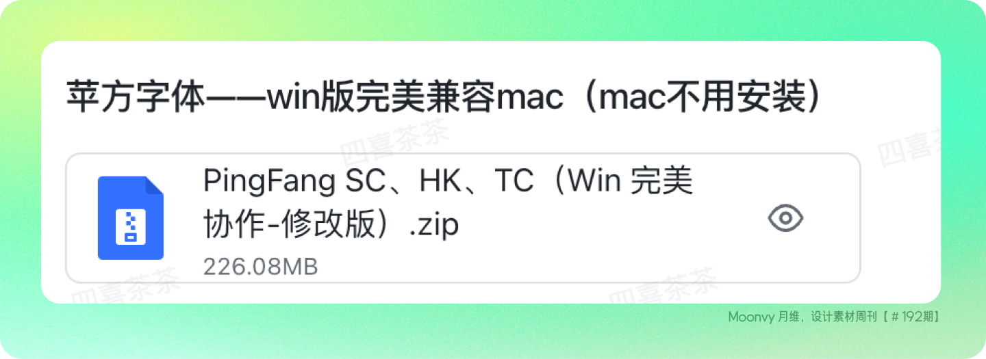 现在,你可以通过安装这个 Windows 兼容版苹方字体包 来彻底解决问题。只需在 Windows 设备上下载安装即可正常显示设计稿中的苹方字体。