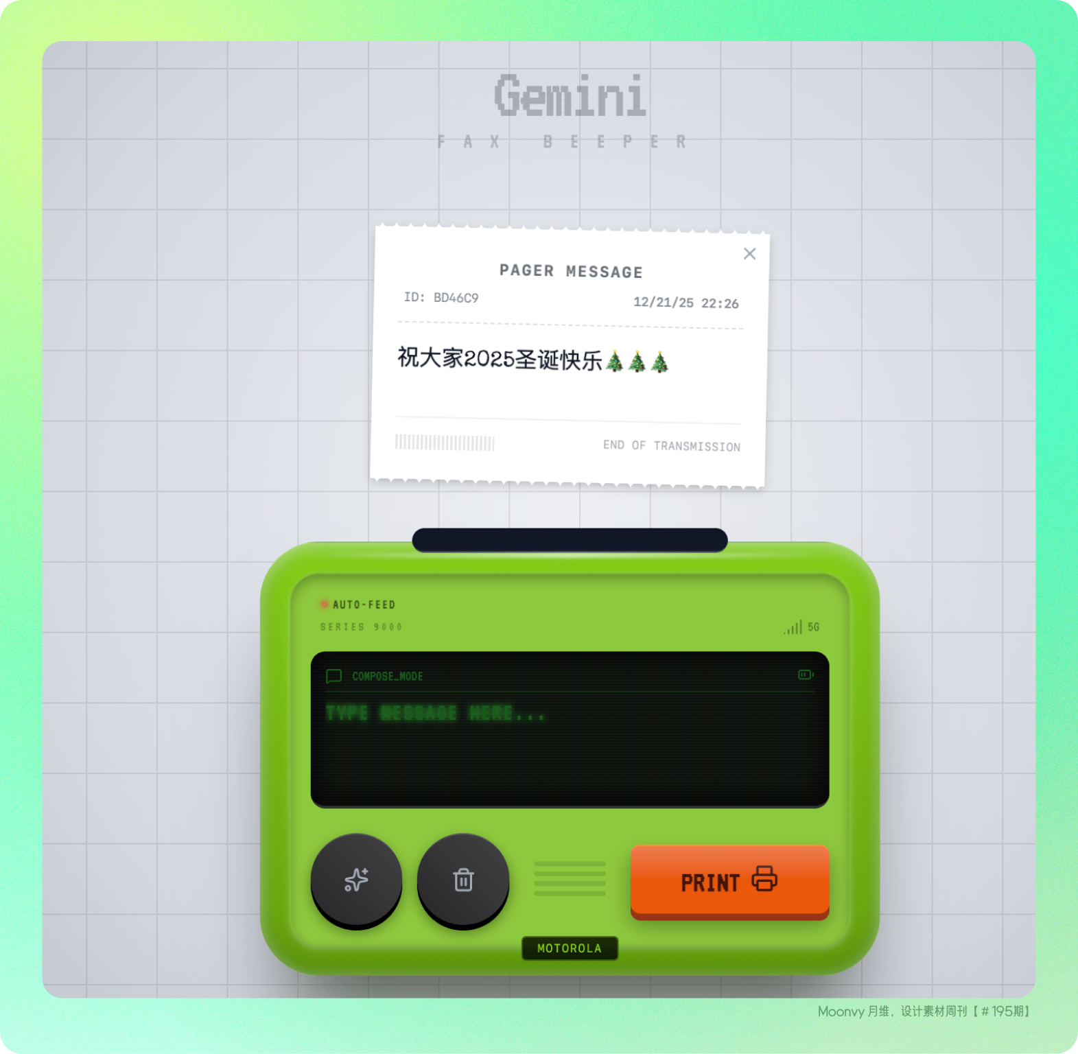 请帮我制作一个 Motorola Fix Beeper 复古打字机应用,网页中间显示一个打字机,可以把用户输入的文本,生成一张卡片,类似打字机缓慢打出的效果,并且可以拖动卡片到空白区域