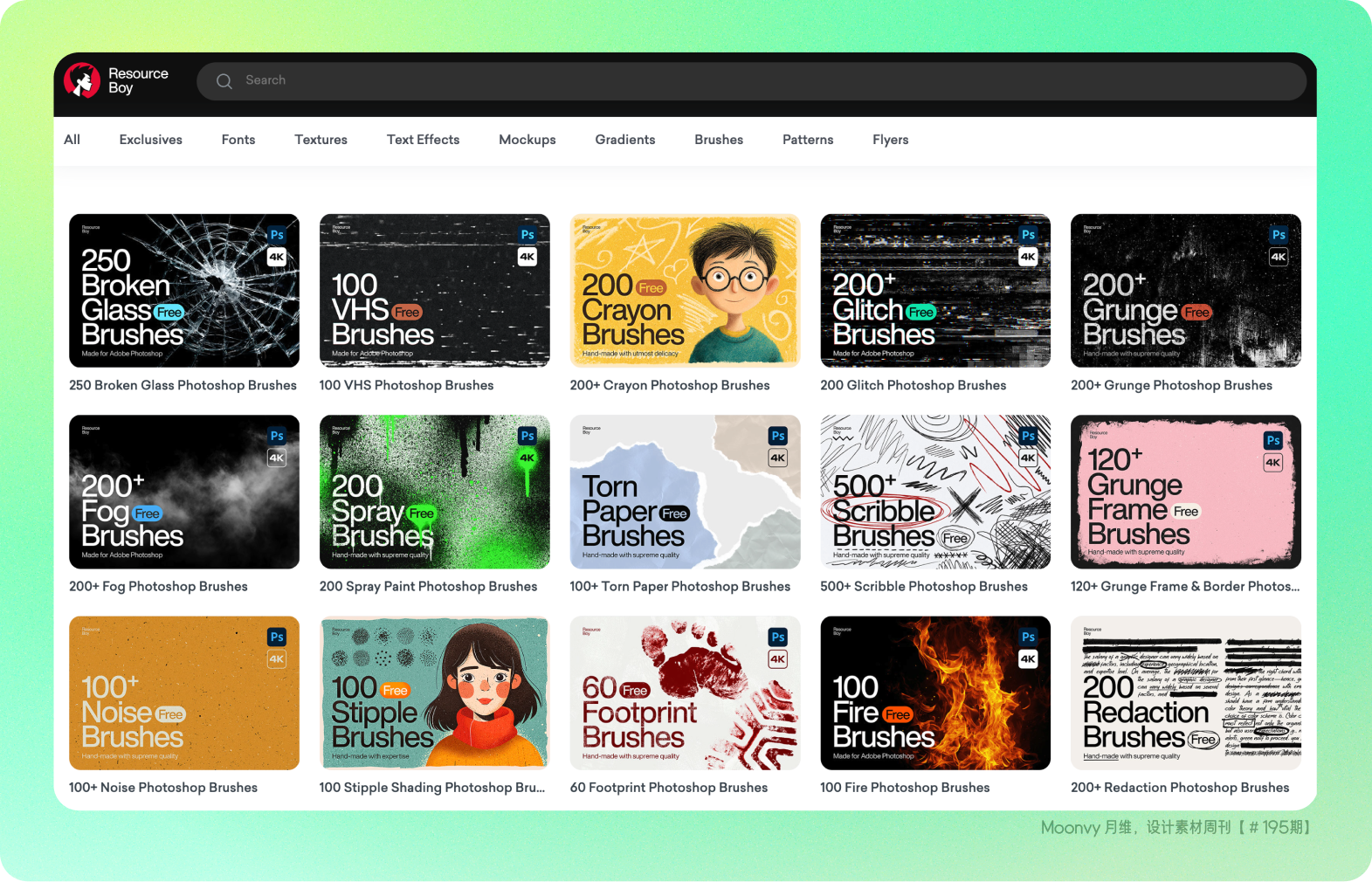 高质量的样机、图案、纹理、笔触等素材资源,网站中有各种格式和各种设计素材部分支持免费下载使用