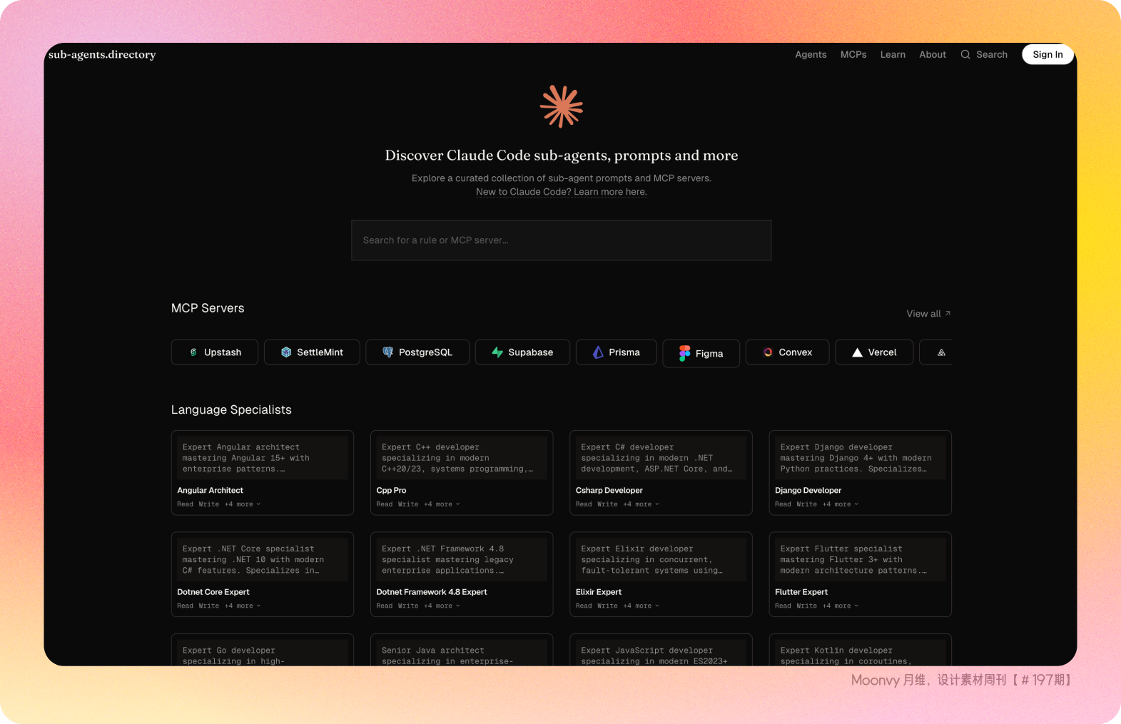 是一个针对 Claude Code 子代理生态的资源整理与搜索平台,方便你查找适合自己任务的 AI 子代理和服务器集成