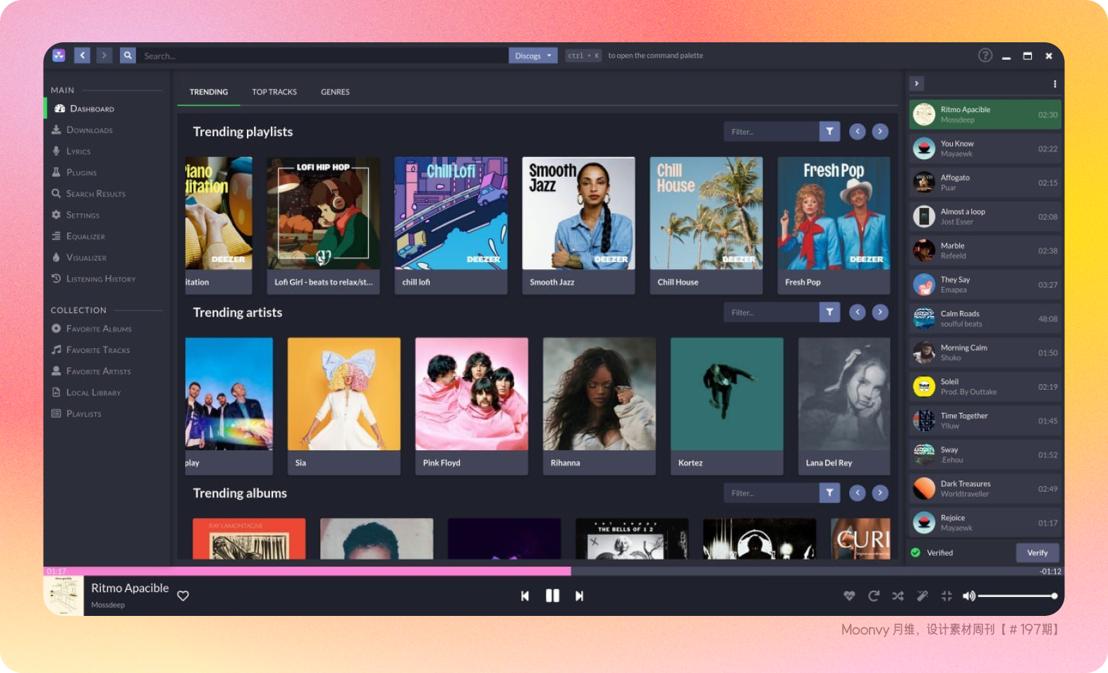 Nuclear 是一个免费、开源的跨平台桌面音乐播放器,通过聚合 YouTube、SoundCloud、Jamendo 等多个免费音乐来源,提供类似 Spotify 的音乐搜索和播放体验,无需注册、无广告、无订阅,支持播放列表、本地音乐、歌词显示等功能,适合想要使用开源、自由音乐播放器的用户。