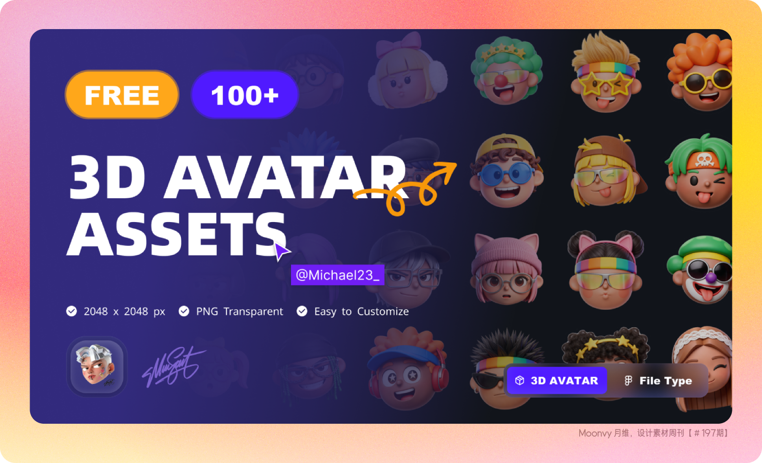 包含 100 个完全可定制的 3D 头像的精美素材包!多样化、富有表现力的角色涵盖所有人群和个性,可以作为项目中的头像资源