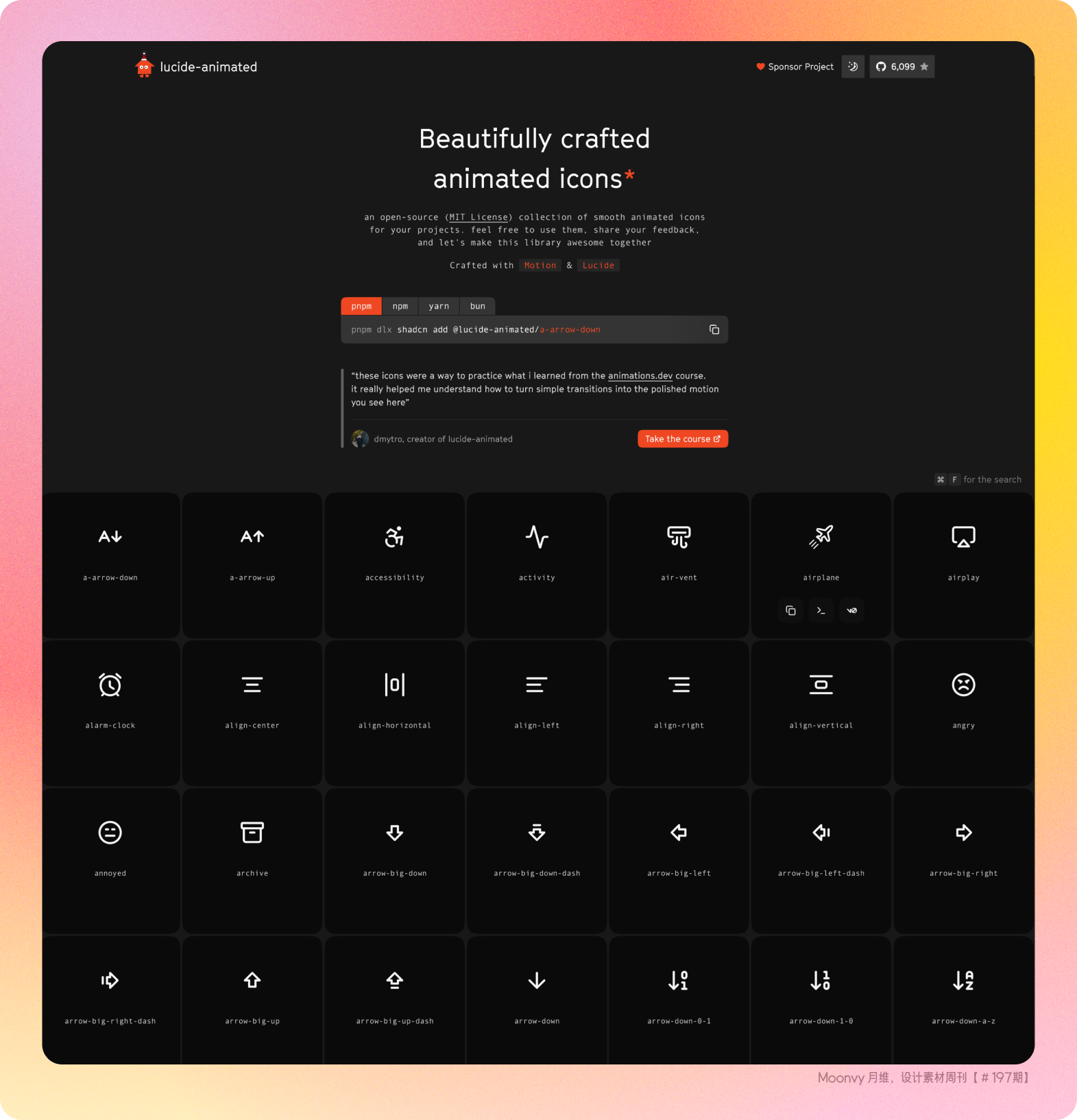 Moonvy 月维是一款专业的「设计资源管理工具」,让设计图的管理与交付在浏览器中就能轻松完成。提供更高效的切图、标注体验,并支持多种开发代码格式,让设计交付更省心、更顺畅。(moonvy.com)