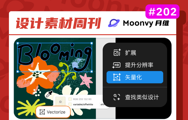 使用全新的 AI 图像工具Vectorize ,将静态图像转换为可编辑的矢量图。将手绘草图、旧式 PNG 图标、真实纹理等素材导入画布,然后重新着色、缩放和优化,创作出更具表现力的设计。