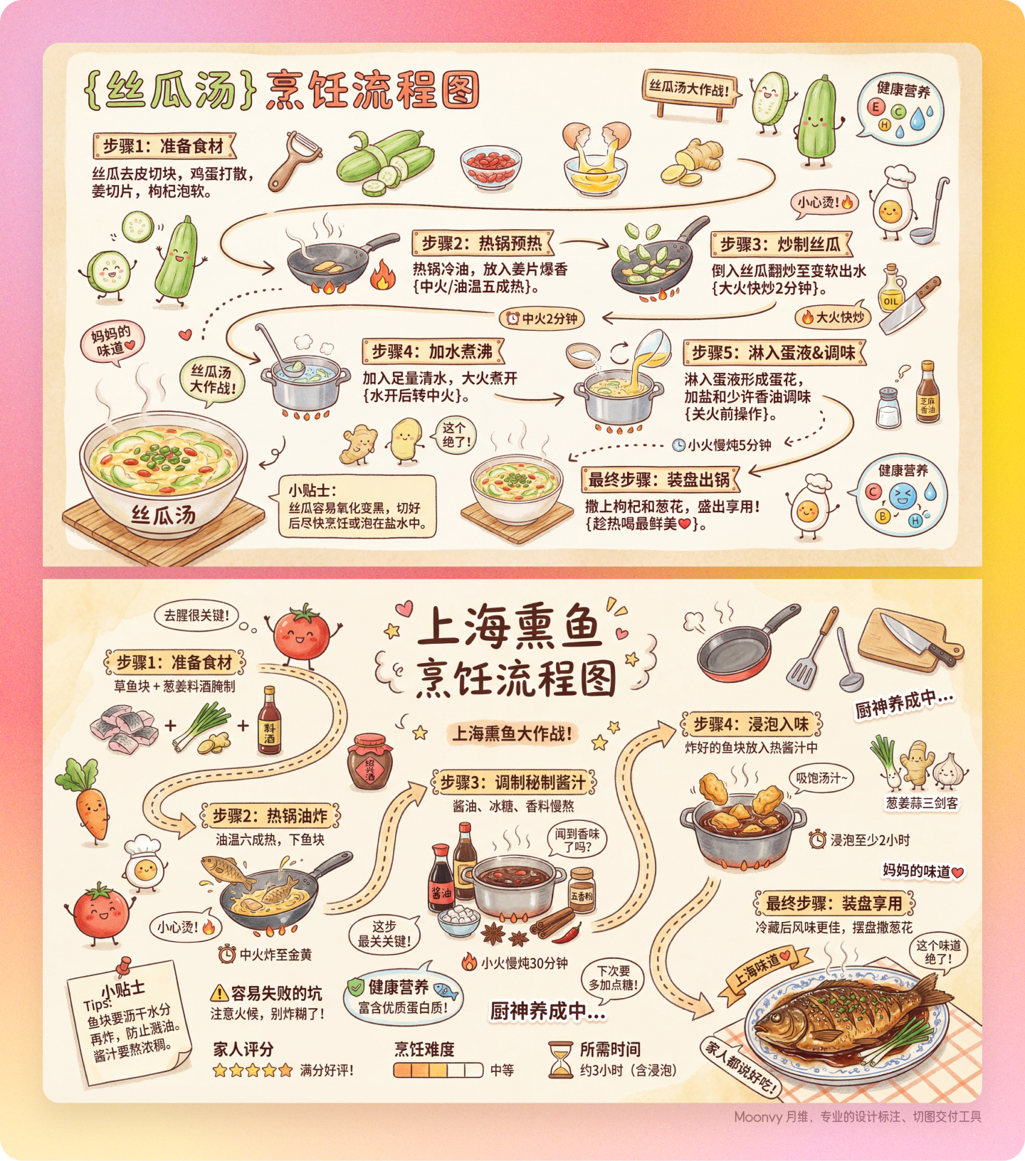 - 整体感觉:像翻开外婆的老菜谱,或年轻人的厨房vlog笔记