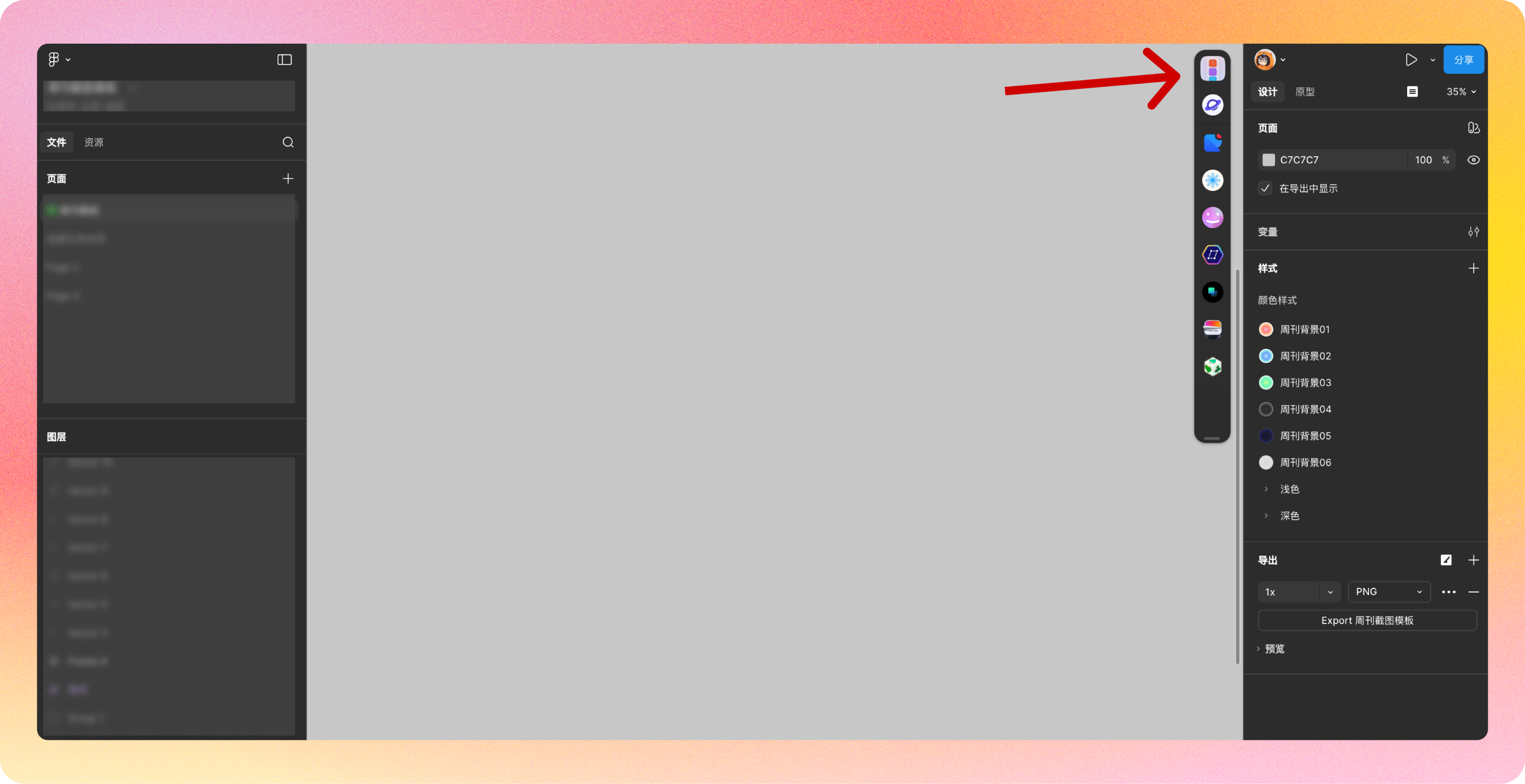 打开一个设计文件,在右上角的 FigmaEX 设置按钮,打开 EX 设置面板
