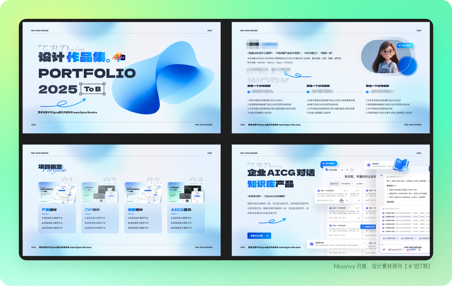 蓝色浅色系 B 端 AI 产品 UI UX 作品集源文件模板