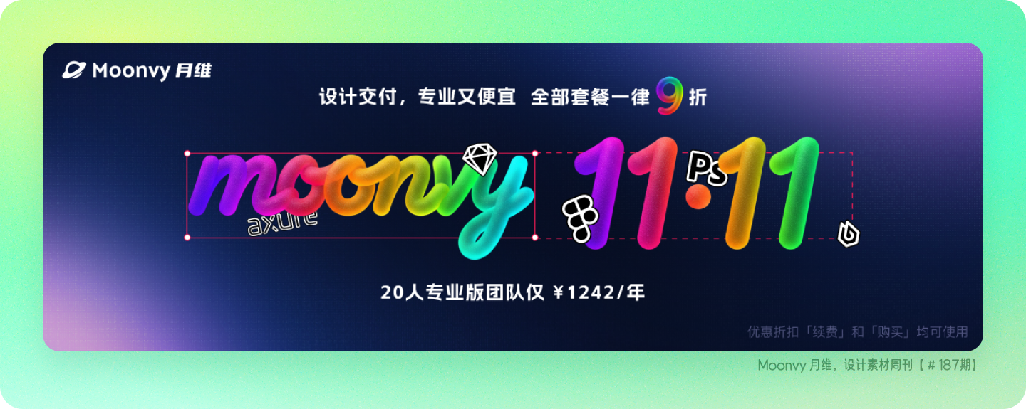 月维双11的活动视觉是使用 Nano Banana 生成 3d 果冻质感的文字,再增加简单的品牌元素完成的,全程大概1小时左右,3 年前不敢想 AI 能为设计师提效如此之多