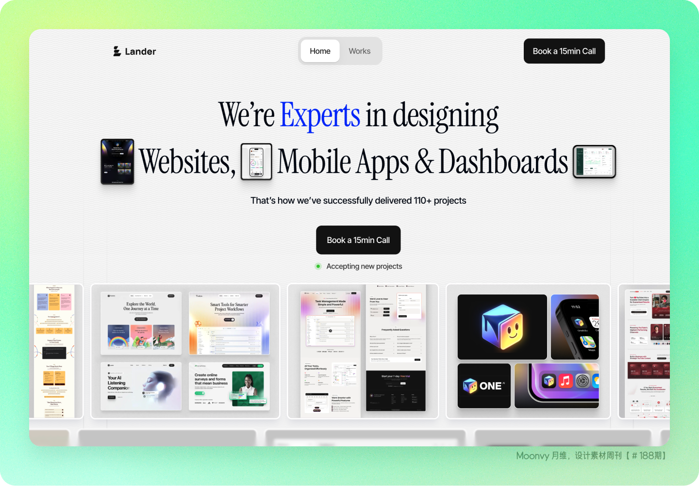 专注于科技创业公司的设计工作室,已完成 110+ 项目,作品涵盖网站、移动应用、仪表盘等多个领域,设计风格现代精致,动效细腻流畅。他们使用 Framer、Webflow、Next.js 进行开发,并擅长集成 Rive、Spline 等工具创造复杂的 2D/3D 动画效果。
