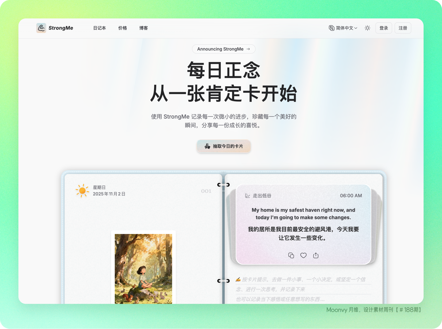一款通过积极肯定卡引导用户构建积极心态的应用。每天抽取一张肯定卡,根据提示完成微行动、记录微日记,将思考转化为具体行动。支持图片上传、位置记录,帮助你与亲友分享成长,定期回顾人生感悟。