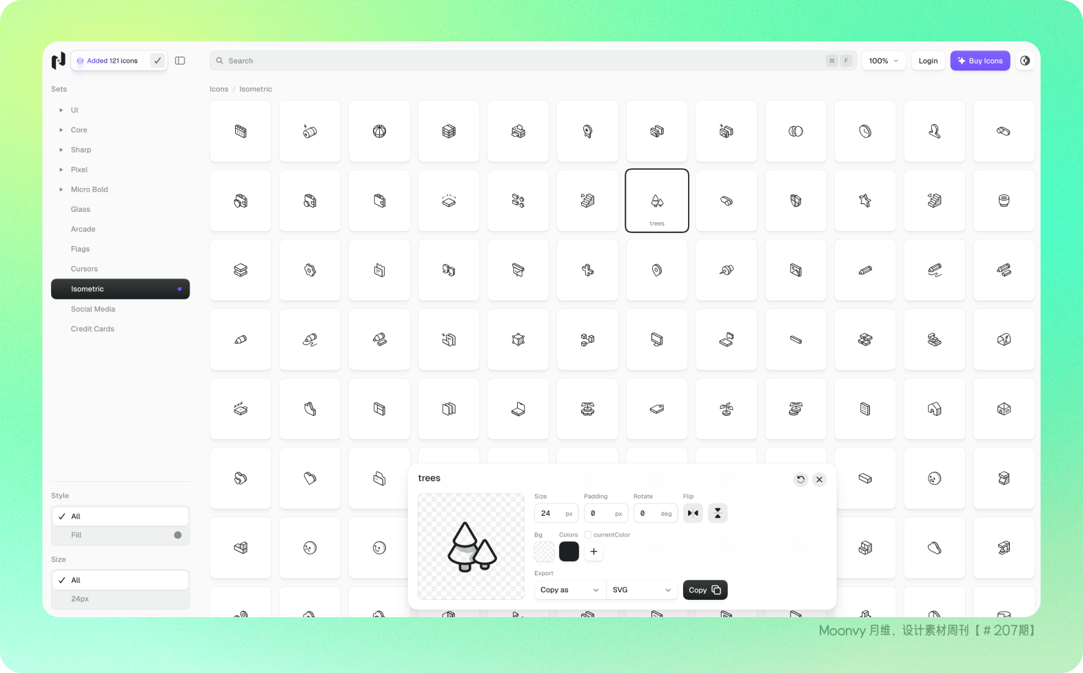之前介绍过的高质量图标库,现在新增 Isometric(等轴测)图标,都可以免费下载使用,属性支持大小、镜像、颜色、边距等参数