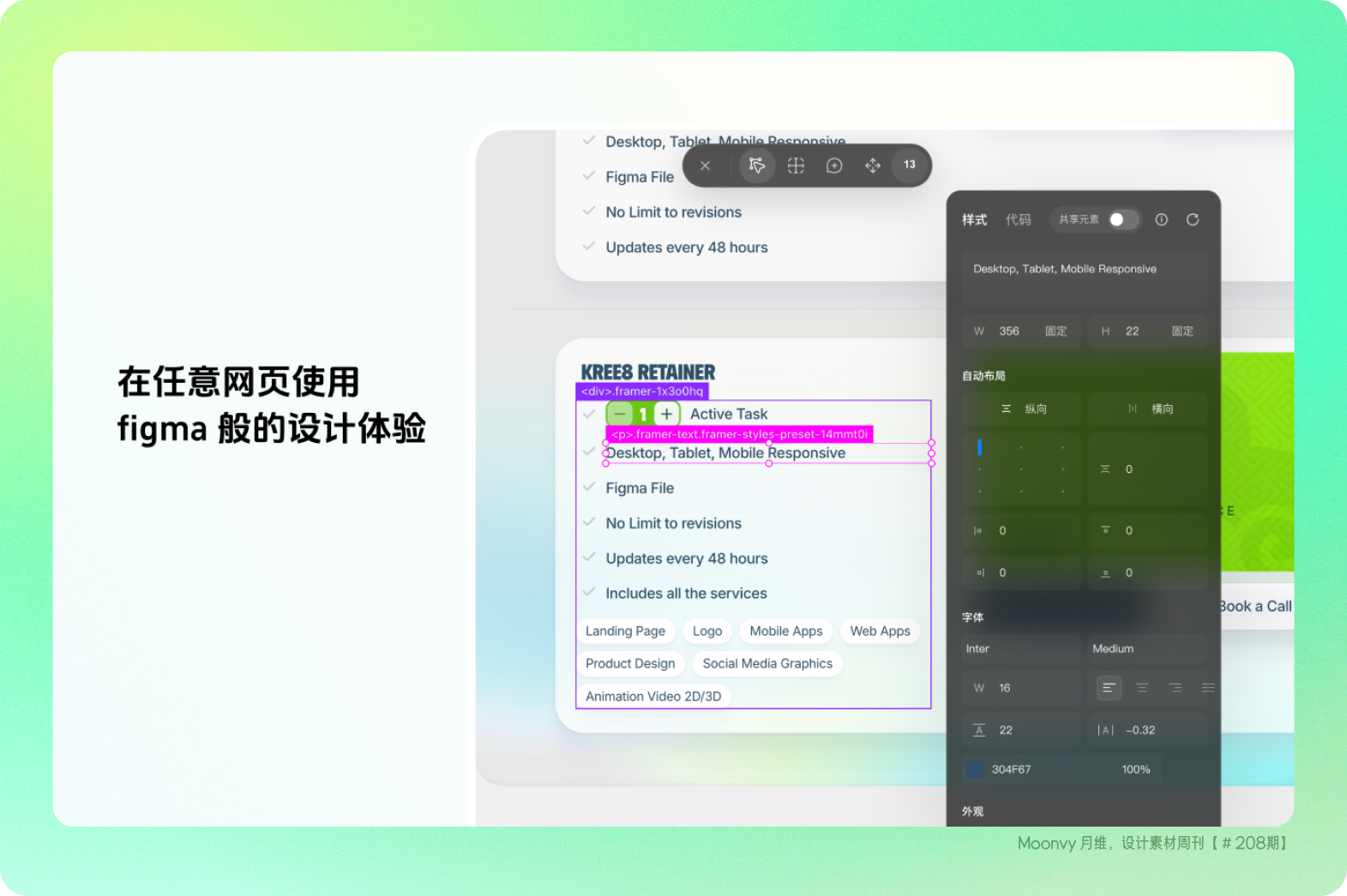 在任意网页上实现类似 Figma 的设计体验,调整元素样式、添加评论,并导出结构化 Prompt 给 AI 开发与协作。