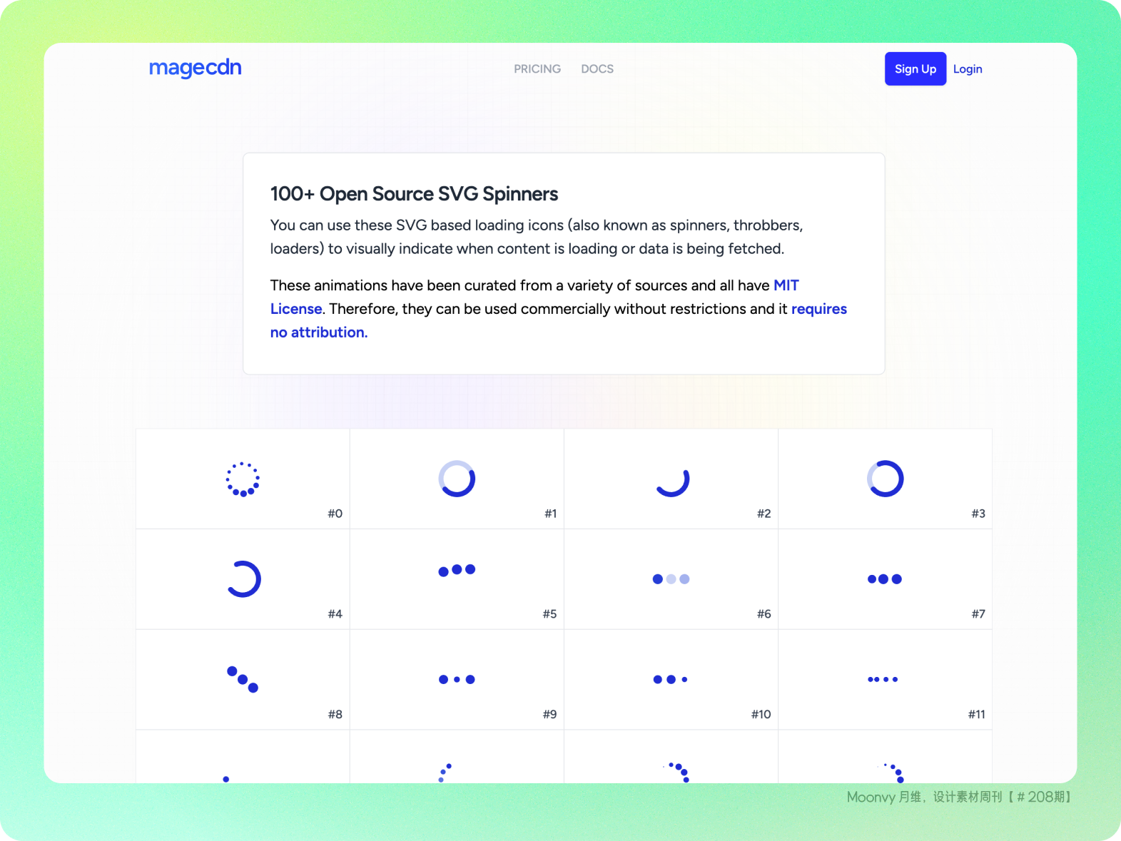 你可以使用这些基于 SVG 的加载图标来直观地指示内容正在加载或数据或正在获取。 这些动画来自多种来源,均采用MIT许可证。因此,它们可以无限制地用于商业用途,且无需署名。