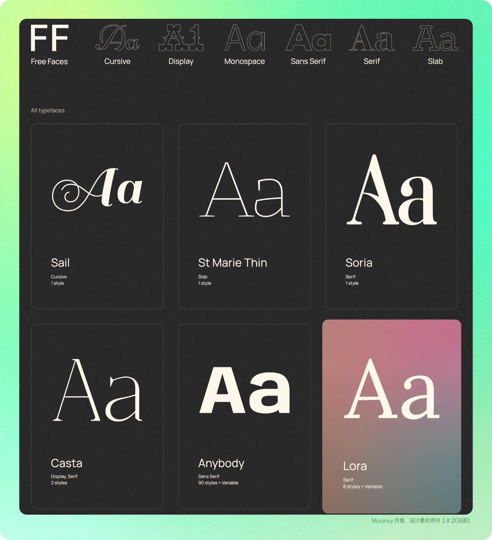 面向 UI/UX 设计师与开发者, Freefaces Gallery 是一个精选的免费开源字体合集,这意味着您可以在个人和商业项目中使用它们,而无需担心许可问题。